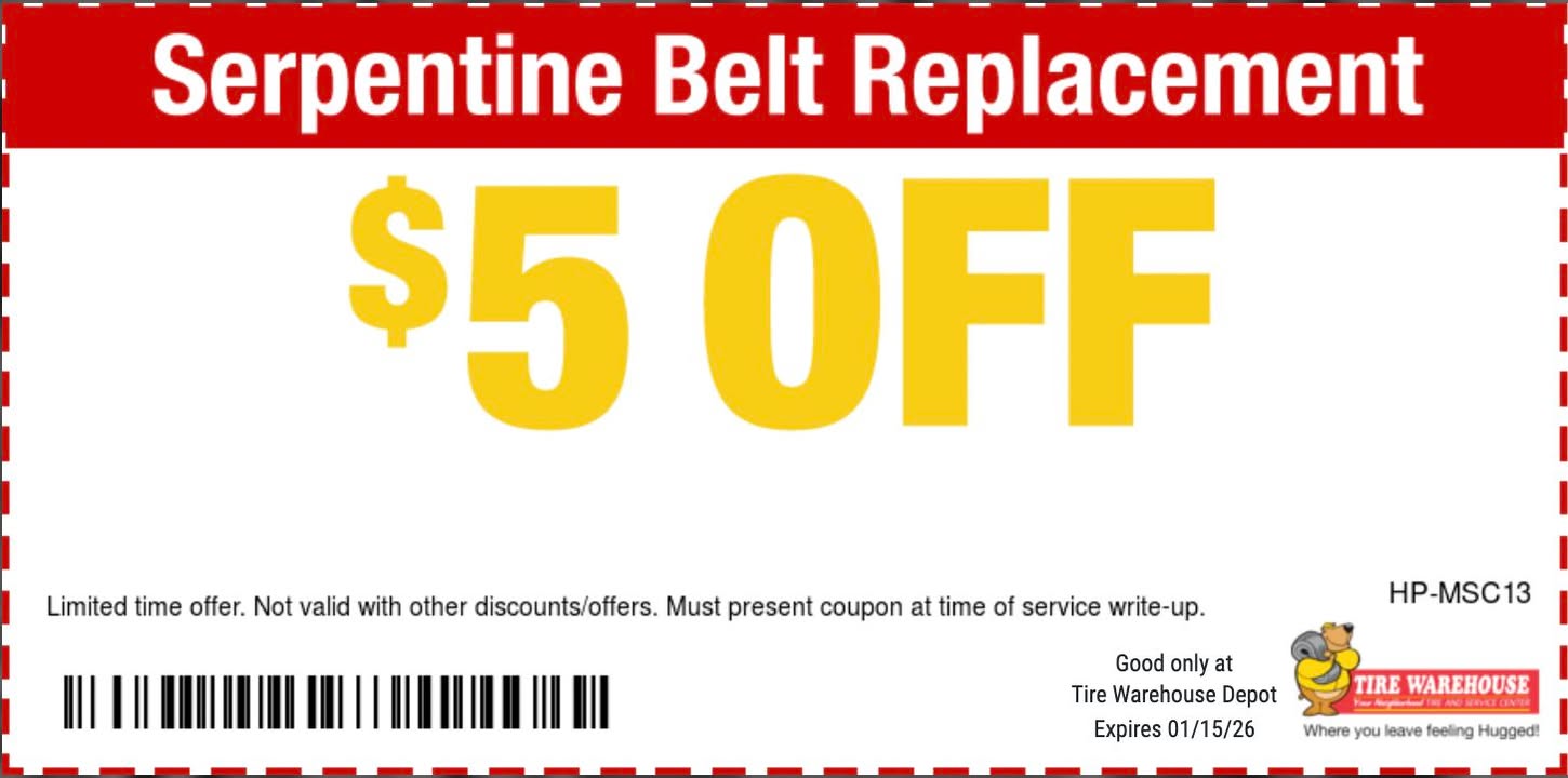Get $5 OFF your Serpentine Belt replacement with the coupon below: