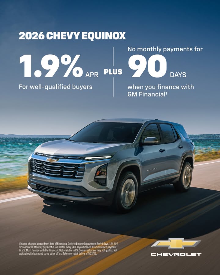 Now, well-qualified buyers can get 1.9% financing on a 2026 Equinox, plus no payments for 90 days