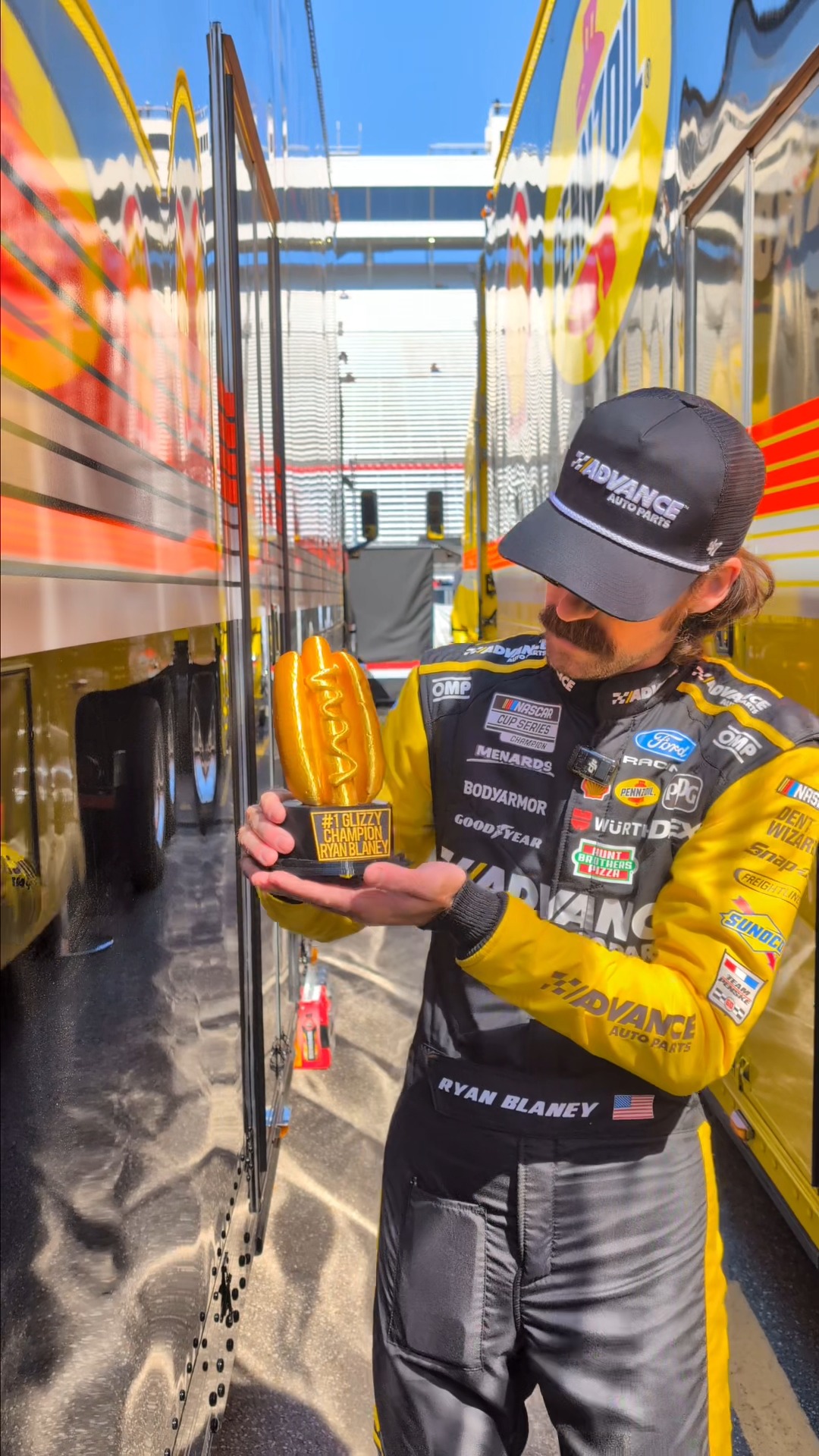 In honor of the Martinsville hot dog, we had to get Ryan Blaney a glizzy trophy 🏆